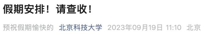 北京理工大学虽然调休,但假期也长达10天。该校在国家放假安排基础上,补休校园开放日、校庆开放日各1天,即9月30日至10月9日放假,共10天。9月28日上班、上课,按照9月30日教学计划安排上课;10月11日上班、上课,按照10月9日教学计划安排上课。