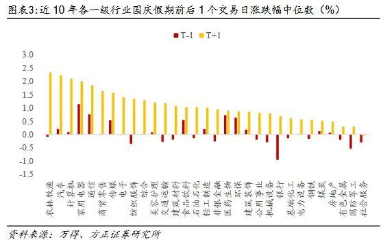 落实到配置层面,从日历效应看,“十一”长假后哪些行业和风格的胜率更高?方正证券表示,从行业指数看,申万一级行业在假期后短期多数收涨。其中,农林牧渔、汽车、计算机、家用电器和通信行业节后首个交易日涨跌幅中位数分别为+2.34%、+2.22%、+2.11%、+2.00%和+1.85%,表现靠前。计算机、美容护理、环保、医药生物和汽车行业节后5个交易日累计涨跌幅中位数分别为+3.83%、+3.74%、+3.60%、+3.41%和+3.38%,表现较为亮眼。