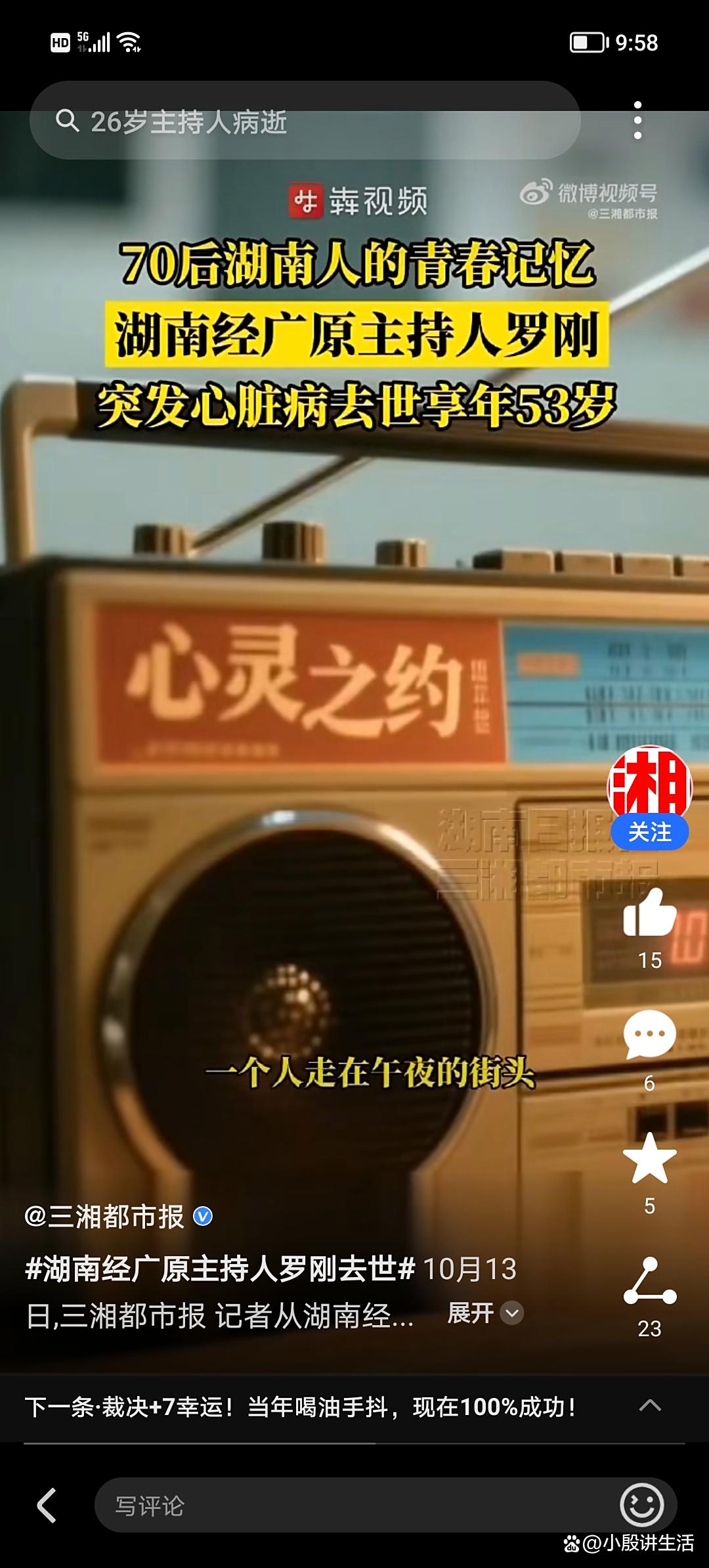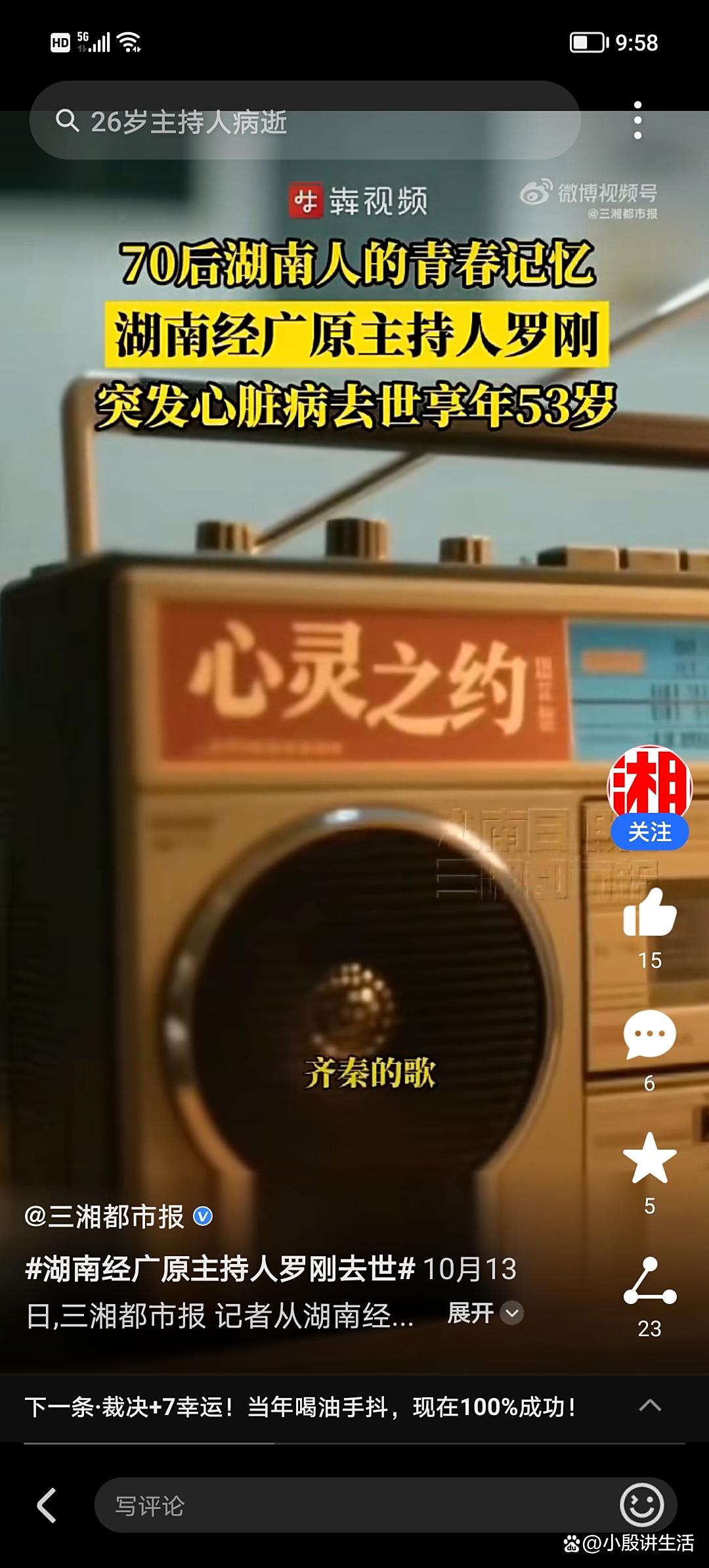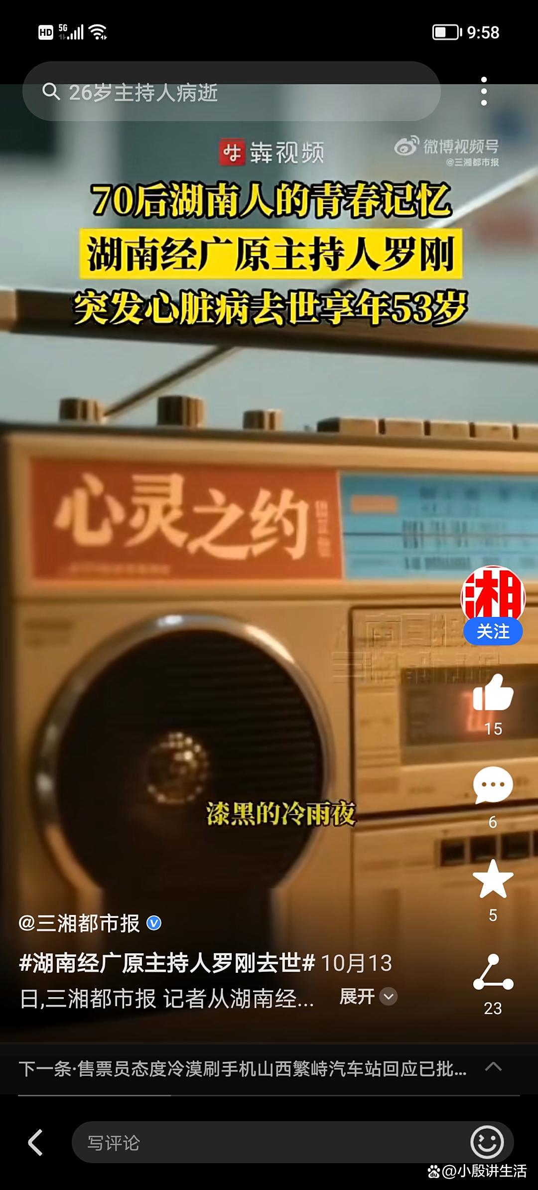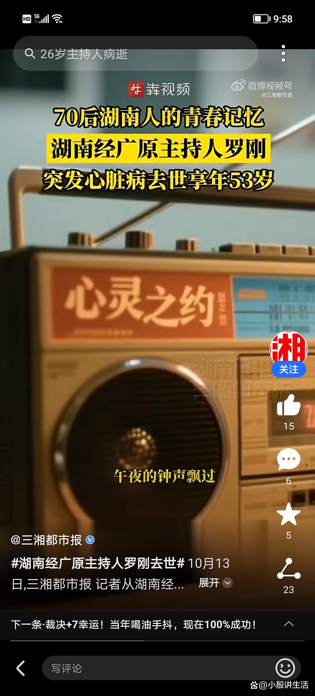 1:湖南知名主持人罗刚因为心脏病去世,享年53岁