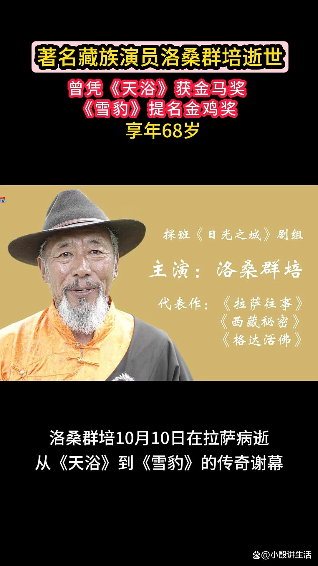 根据有关媒体报道称:“著名的藏族演员洛桑群培在拉萨去世,享年68岁。”