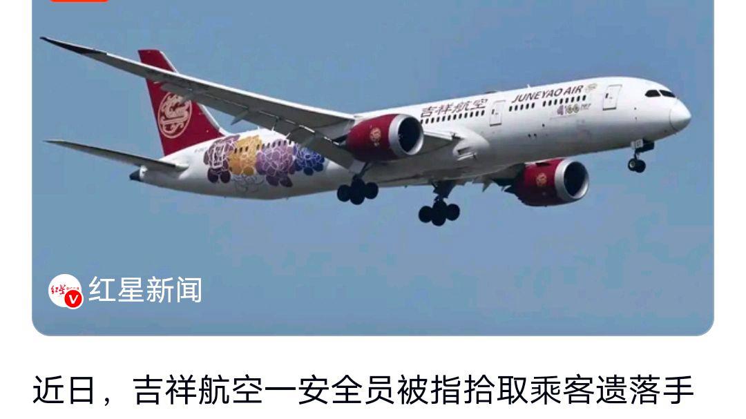 近日,吉祥航空一安全员被指拾取乘客遗落手机后未及时处理。乘客通过定位发现手机位于某小区,报警后安全员方联系失主。航空公司初次未回应,后要求提供证据并称将内部调查。