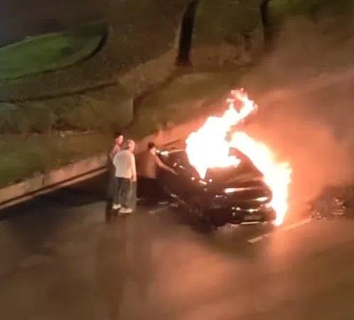 据目击者描述,一辆电动汽车在碰撞后立即起火,由于车门无法正常开启,多名过路司机和乘客尝试用肘击、脚踹等方式破窗,但未能成功。随后使用灭火器喷射仍无法控制火势蔓延,消防人员到达后使用水枪和泡沫灭火剂扑灭明火,但因车门无法打开导致救援延迟。网传驾驶员不幸遇难,不过目前尚无官方确认的伤亡信息,后续救援细节需等待官方通报。