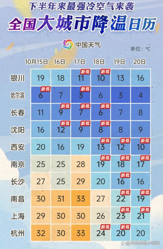 气象学上将这种急剧的温度变化称为“换季式降温”。
