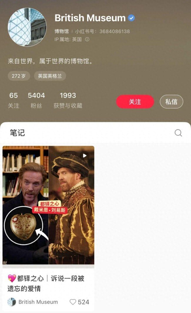 大英博物馆账号悄悄改了简介 新平台引发关注!近日,有网友发现英国大英博物馆在小红书开通了账号,并发布了首条入驻视频。该账号名称为British Museum,身份认证为博物馆,简介为“来自世界,属于世界的博物馆”,目前已有5400多名粉丝。