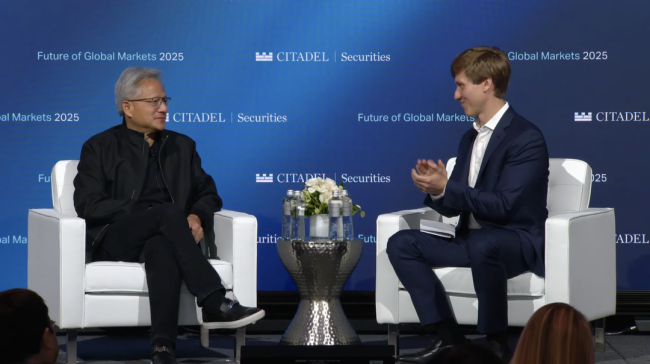 黄仁勋称英伟达中国份额从95%降至0 伤害中美双方!英伟达创始人兼CEO黄仁勋近日出席了美国城堡证券在纽约组织的活动,并与红杉资本合伙人康斯坦丁·布勒进行了对谈。对谈主题为“Citadel Securities 2025年全球市场未来展望:人工智能与下一个增长前沿”。