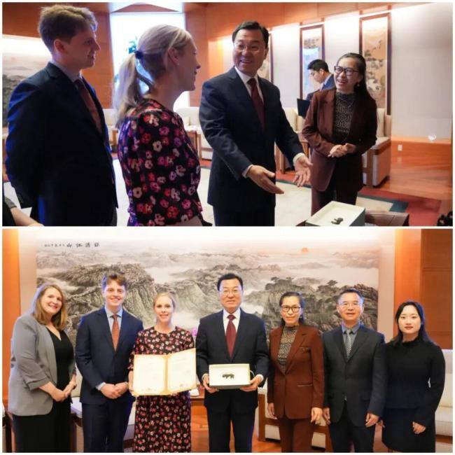 2025年10月16日,中国驻美国大使谢锋代表中国政府接收了美方民间机构代表、莫里斯艺术法律事务所创始人莫里斯代为返还的虎形牌饰文物。