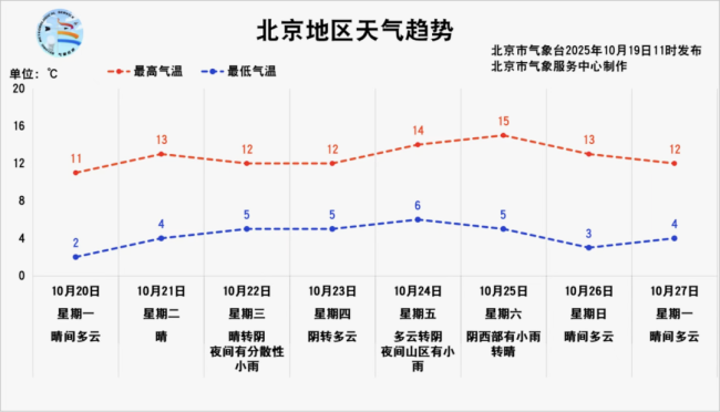 北京市气象局于10月19日15:55发布消息,目前影响北京的冷空气势力已减弱,解除寒潮蓝色预警信号。未来两天早晚气温仍较低,请注意防范。同时,大部分地区风力已减弱,解除大风蓝色预警信号。