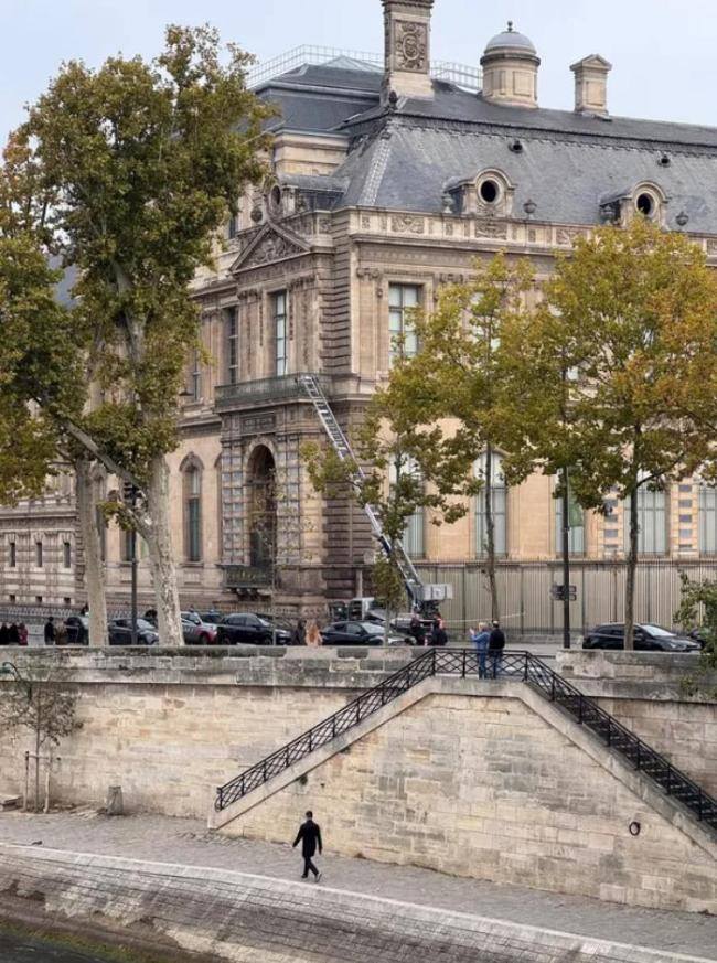 10月19日,一伙伪装成施工人员的劫匪乘升降吊篮从外墙潜入卢浮宫,仅用七分钟就盗走多件珍贵珠宝。目前,嫌疑人仍在逃。