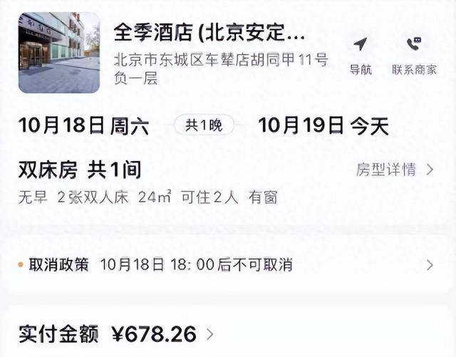 张小姐和朋友在北京旅游期间,在社交平台预订了全季酒店(北京南锣鼓巷安定门地铁站店)10月18日至10月19日一晚的住宿,房费约678元。入住当晚约11点,她们被告知房间尚未打扫完毕,在前台等待五分钟后进入房间,发现保洁人员仍在厕所徘徊。张小姐的朋友洗完澡后发现沐浴花洒上有排泄物,经确认后感到非常恶心。张小姐提供的照片显示,花洒边缘有明显黄色异物。