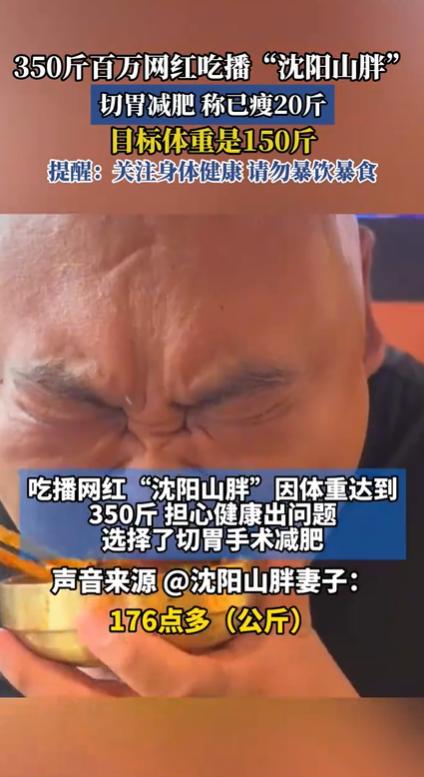 镜头前的"大胃沈阳山胖"曾以十分钟吞下八人份火锅的壮举收获百万粉丝,但当体重秤指针突破350斤大关时,这位32岁的吃播网红终于按下暂停键。近日,他在社交平台公开了自己接受袖状胃切除手术的全过程,引发网友对吃播行业健康风险的广泛讨论。