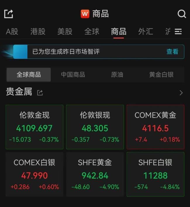 北京时间22日早盘,现货黄金持续下跌,一度跌超2%,触及4000美元。随后跌幅收窄,截至发稿,报4109.697美元/盎司,跌0.37%。COMEX黄金期货涨0.18%。