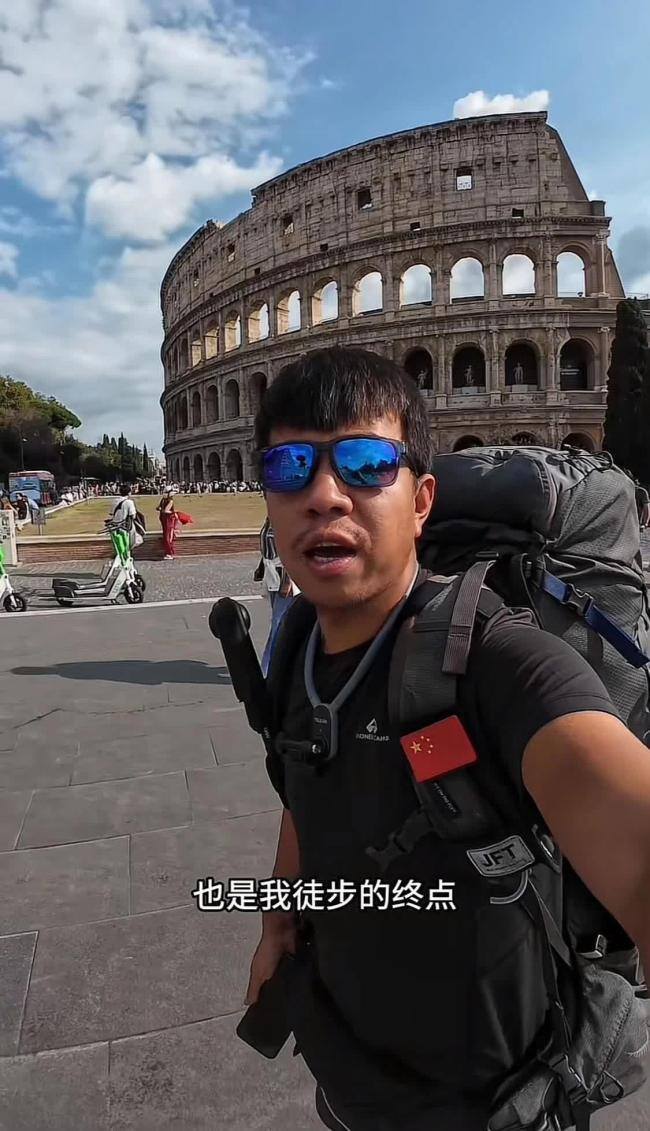 为完成这个挑战,他卖车贷款,花了20万元,在两年时间,背着约70斤的行李,徒步8000公里,穿越12个国家,最终在10月15日抵达罗马。抵达罗马后,他在斗兽场外哭了两个小时。