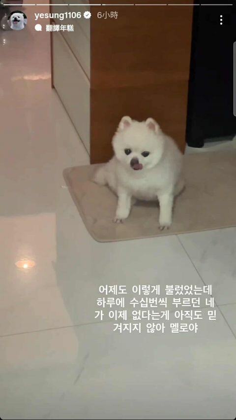 Super Junior艺声家的毛孩「Melo」今(22)日突然过世,艺声的IG充满不舍以及对Melo的想念。
