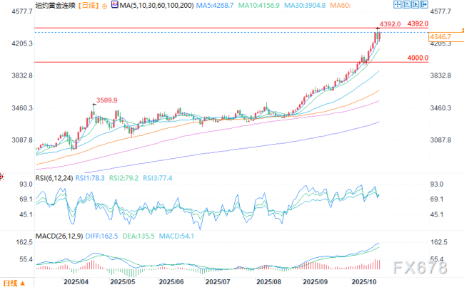 从技术面来看,12月黄金期货多头在短期整体技术面占据优势,但周五出现看空的“关键反转下跌”形态,暗示市场可能已形成顶部。白银多头同样在短期内占据优势,但也出现了类似的看空信号。两种金属的技术阻力位和支撑位分别为黄金的4300.00美元、4350.00美元以及白银的51.50美元、52.00美元。