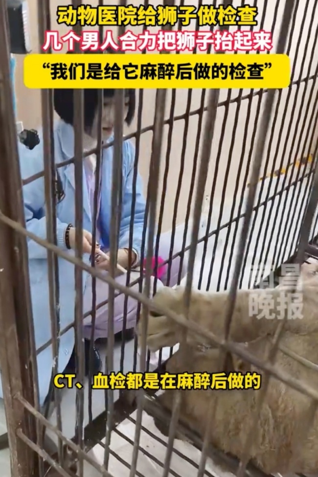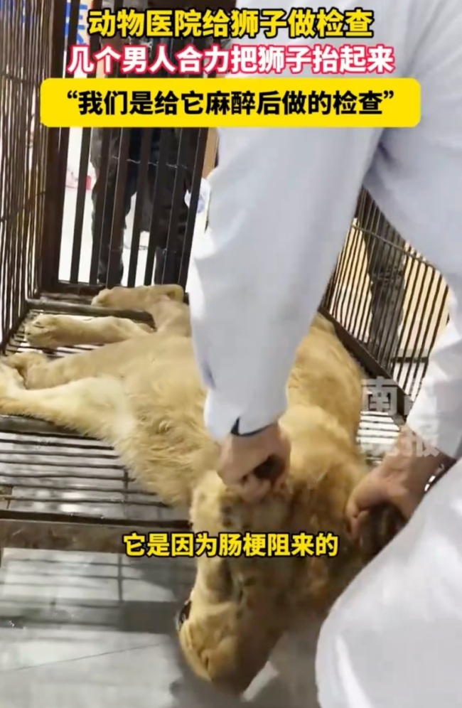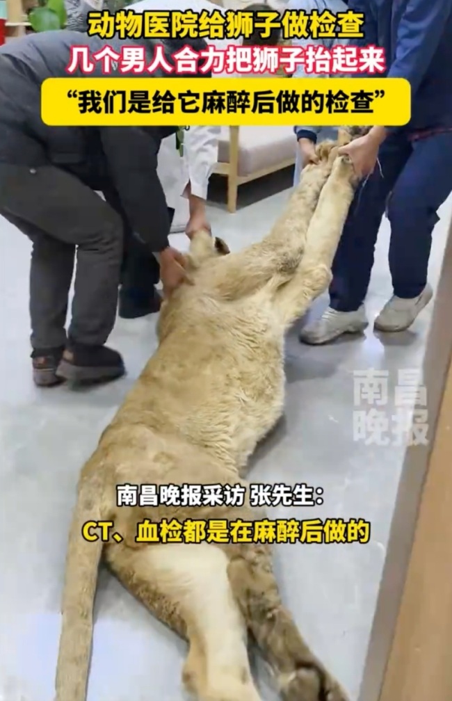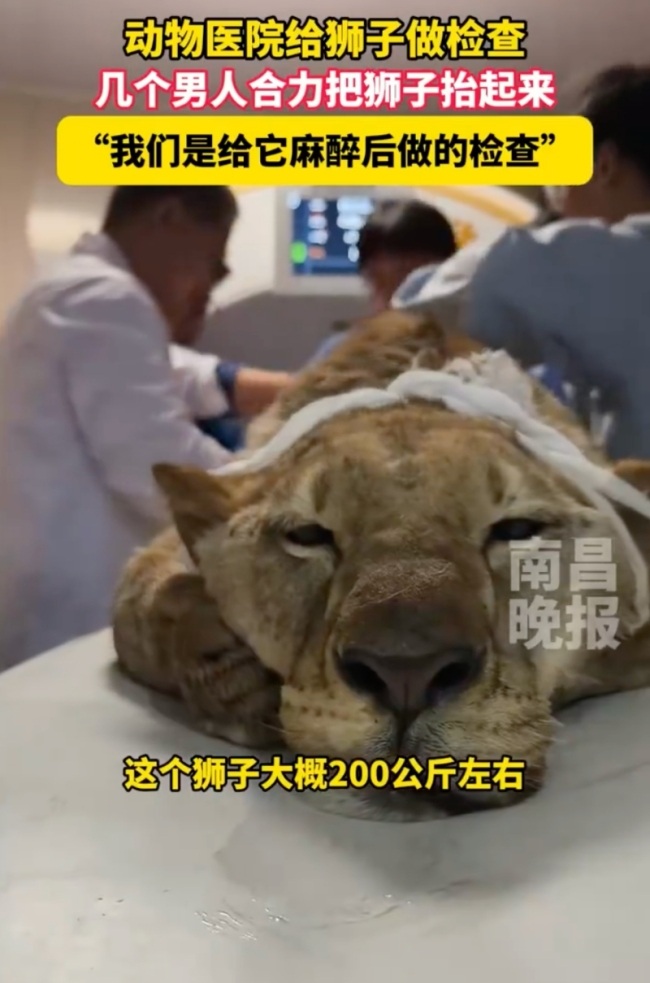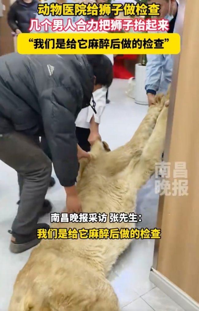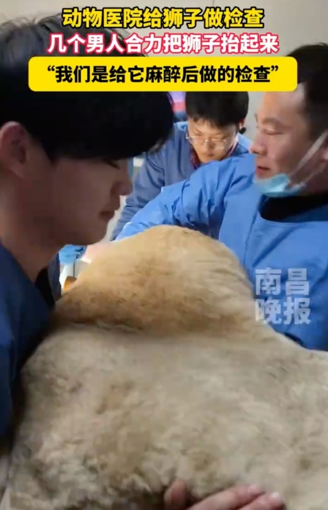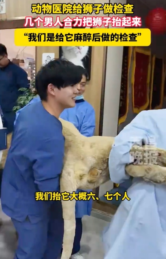 河北动物医院为狮子体检。10月23日(原创采访时间),河北,动物医院给狮子做检查,几个男人合力把狮子抬起来,“我们是给它麻醉后做的检查”。河北动物医院为狮子体检:给它麻醉后做的检查河北动物医院为狮子体...