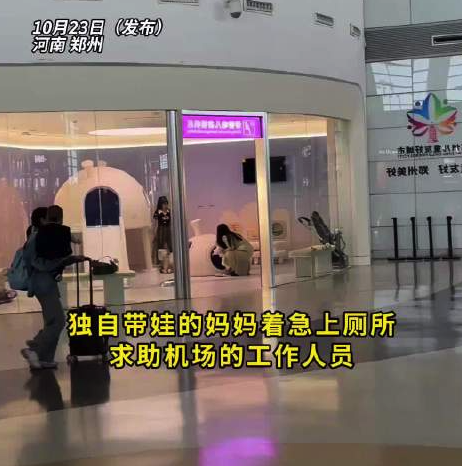 10月23日,河南郑州。宝妈着急上厕所,河南郑州机场工作人员秒变“奶爸”,网友:这波托娃服务太暖心!
