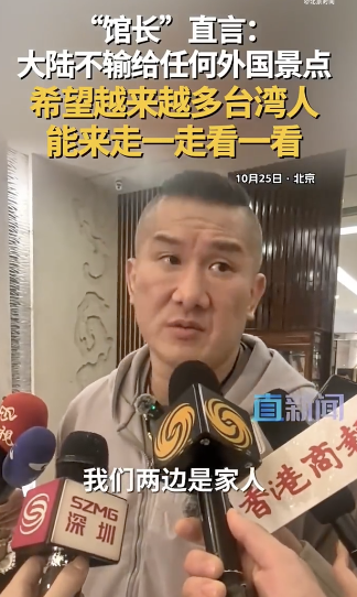 馆长说希望能带动台湾人来大陆。网红“馆长”坦言,大陆不输国外任何景点,很大,又性价比很高。本次行程就是希望带动更的台湾人来大陆看看,现在已经有很多台湾年轻人过来了,“等以后越来越多人过来,我就不用来了...