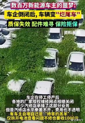 更绝的是,按《汽车销售管理办法》规定,车企停产后得保证至少10年的配件供应和售后。可现实是,车企一破产,经销商立马“跑路”,客服集体“失联”,这规定就跟“废纸”似的。中消协报告都点名了:新能源“烂尾车”售后,已经成了消费者投诉的“重灾区”。