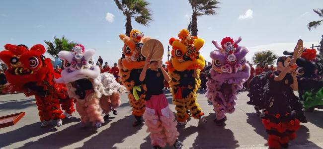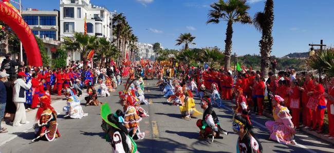 巡安队伍前方,6匹骏马开道,来自台湾的报马仔、哨角队、千顺将军、电音三太子与英歌队、舞龙队等组成两岸特色民俗阵头,热情演绎、热闹非凡;仪仗队、仪卫队紧随其后,身着传统服饰的湄洲女与一袭汉服的司礼生分列妈祖金身两侧,巡安护驾团成员及敬仰者沿道随行,浩浩荡荡,绵延数里,蔚为壮观。此次巡安,共有49支队伍2700多人参与绕境踩街,共同演绎了一场精彩的民俗文化盛宴。