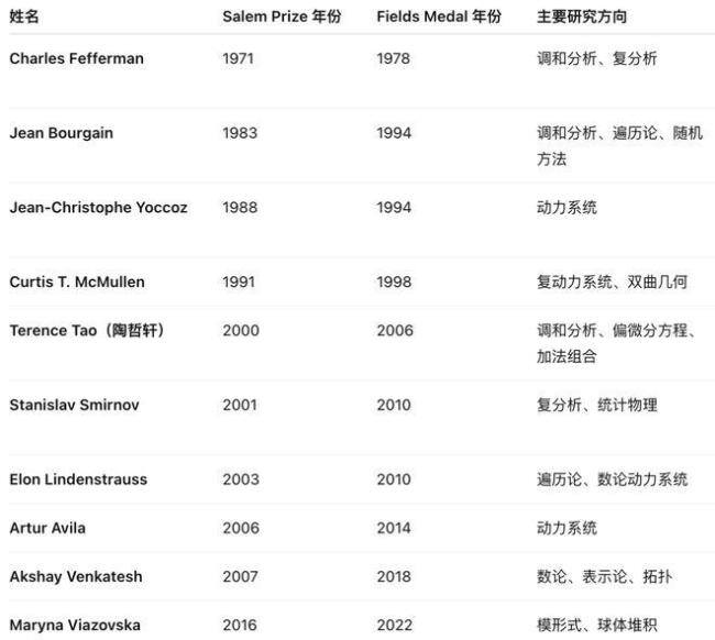 塞勒姆奖设立于1968年,以纪念法国数学家Raphaël Salem,主要奖励在傅里叶分析或相关领域有杰出贡献的年轻数学家。历史上,已有十位塞勒姆奖得主最终获得了菲尔兹奖,其中包括陶哲轩。他在2000年获得塞勒姆奖后,六年后便赢得了菲尔兹奖。