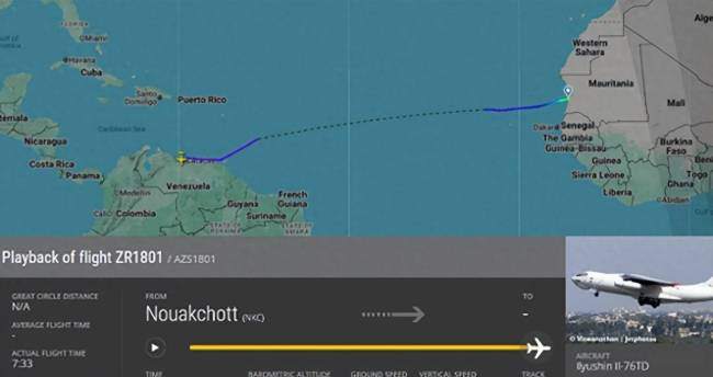 2025年10月26日,一架俄罗斯伊尔-76TD型运输机抵达委内瑞拉。这架飞机隶属于俄罗斯的阿维科恩·齐托特拉恩航空公司,由瓦格纳雇佣兵集团控制,主要用于军事物资和人员运输。该运输机从俄罗斯出发,途经亚美尼亚、阿尔及利亚、摩洛哥、塞内加尔和毛里塔尼亚等国,最终抵达委内瑞拉首都加拉加斯。由于涉及敏感军事活动,瓦格纳集团和阿维科恩·齐托特拉恩航空公司均被美国列入制裁名单。这架运输机注册号RA-78765也被美国财政部列入制裁报告,指出其涉及向委内瑞拉及非洲地区运输武器。
