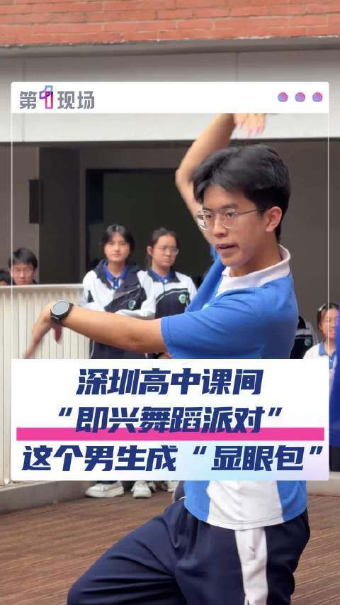 10月29日,深圳外国语学校高中园,15分钟课间时间,上演“即兴舞蹈派对”,一位男生成“显眼包”。记者采访舞蹈社团副社长徐凯豪:我在家里偷偷学偷偷练,到学校来大放异彩。