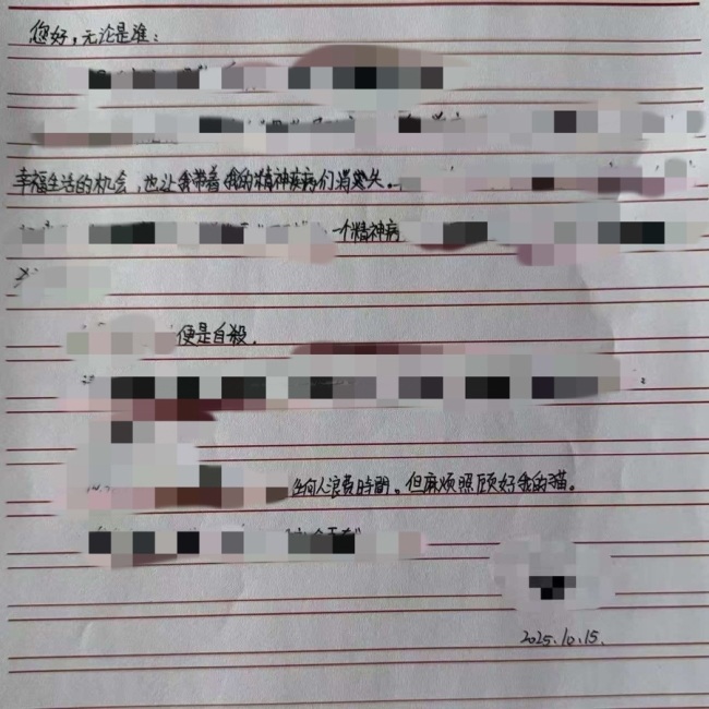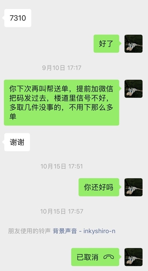 “那天下午,我在取餐等餐间隙刷朋友圈,看到一封‘遗书’,心里立刻‘咯噔’了一下,马上去翻与这名用户的聊天记录。”安宁回忆了一下,发布“遗书”的是一名独居残障女孩,之前接过她的跑腿订单,因为楼道手机信号不好,对方主动添加了他的微信,方便送单时联系。