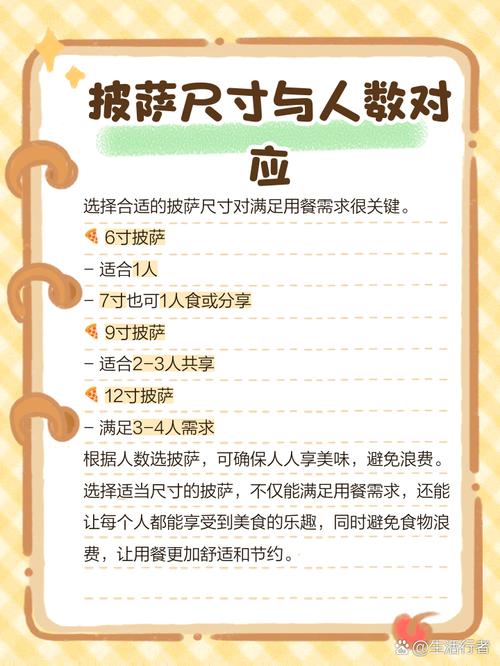 3、披萨的大小是按照英寸来计算的。披萨尺寸的国际标准 披萨作为一种源自意大利并在全球广泛流行的食品,其尺寸的计算方法在国际上有一个统一的标准,那就是使用英寸作为单位。英寸作为一种长度单位,在食品行业尤其是披萨制作和销售中得到了广泛应用。
