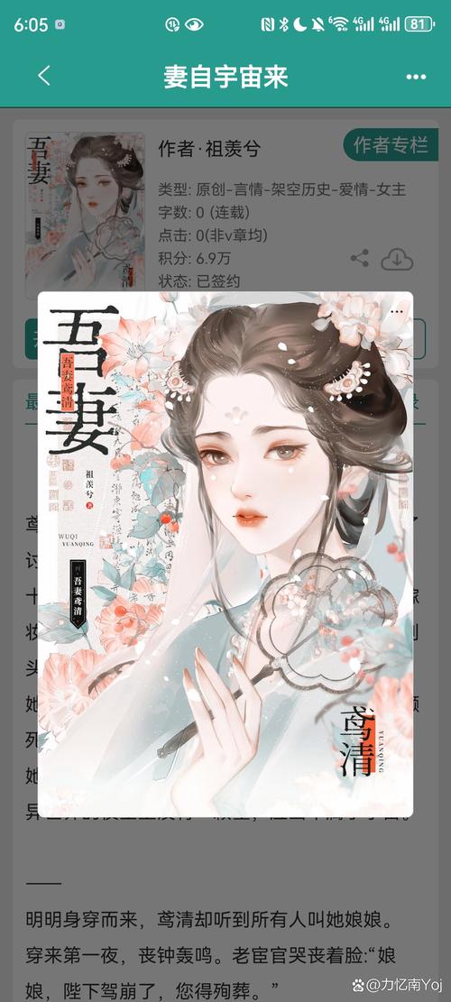 《末世闺中秀》by:宋昙 新颖的末世古言背景设定,脑洞大开,角色设定独特,剧情跌宕起伏。《枭起青壤》by:尾鱼 两千多年前的历史故事,神秘的传说,适合喜欢历史与神秘元素的读者。《镜明花作》by:Twentine 主人公在江湖中历练,体验人生百态,情感丰富,正能量满满,适合喜欢武侠与成长故事的读者。