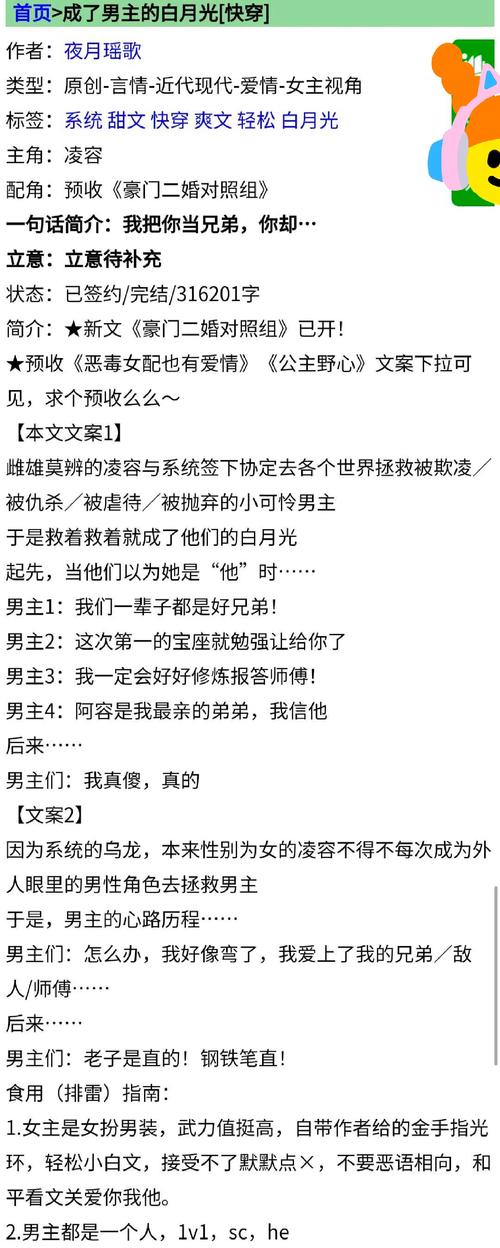 3、风流书呆的《快穿之打脸狂魔》则是一部集搞笑、热血、恋爱于一体的作品,主角在打脸各路反派的同时,也收获了真挚的友情和爱情。喵崽要吃草的《快穿之卖的一手好队友》则是一部策略与智慧并重的作品,主角凭借出色的策略与队友合作,成功完成了各种看似不可能的任务。