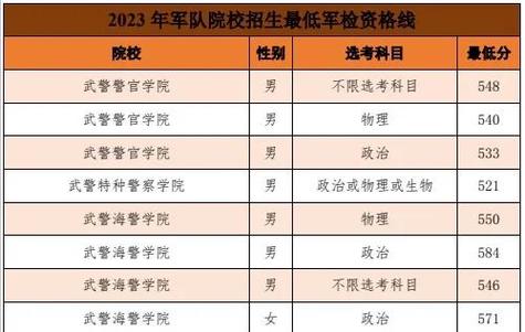 5、考军校的条件主要包括政治条件、分数要求、身体健康条件,报名通常在所在地招生***或指定网站进行,考试科目一般包括语文、数学、英语和综合能力等。以下是详细解考军校的条件 政治条件:家庭三代直系血亲无犯罪记录。这是为了确保军校学员的政治立场坚定,无不良家庭背景影响。