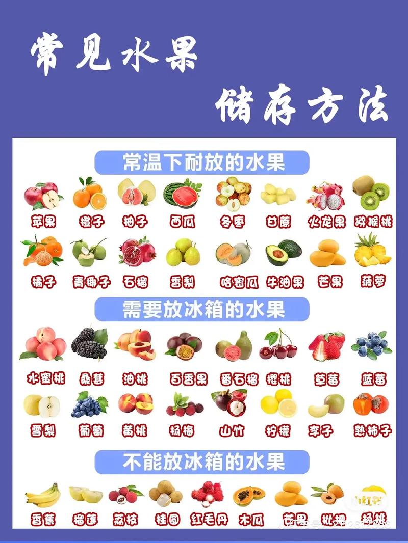 2、不同水果适合存放在冷库的温度不同。比如苹果一般适宜在0-4℃存放;香蕉适合的温度是12-14℃;橙子在2-4℃能较好保存;而草莓适宜的温度为0-1℃。存放流程如下: 预冷处理:水果采收后带有田间热,要先进行预冷,使其温度尽快降低到适宜冷藏的范围。