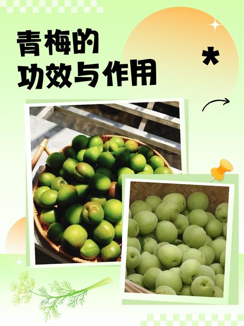 青梅与李子的区别 青梅和李子是两种不同的水果。青梅在成熟后呈现青绿色,果肉较厚,核小,味道酸涩,不适合直接食用,通常加工成蜜饯或其他食品。而李子成熟时颜色鲜亮,可以是紫红色或黄绿色,果肉甜度较高,可以直接食用。