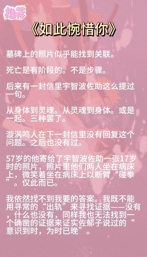 1、《被照美冥挖了出来》作者:大赦天下L简介:该小说讲述了主角右斗在雾忍村的成长历程,以及他与宇智波斑、千手柱间等忍界大佬的恩怨纠葛。小说剧情紧凑,情节跌宕起伏,人物形象鲜明,值得一读。 《我以为自己能养出火影》作者:浓墨浇书简介:这是一只乌鸦(北原)照顾(或被照顾)宇智波鼬的幼崽的温馨故事。