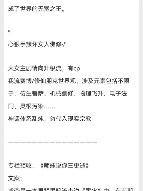 4、十大巅峰大女主玄幻小说包括:《神医弃女》:这部小说讲述了叶凌月、帝莘的故事,女主是神医,拥有驭兽的能力,是一部非常受欢迎的玄幻小说。《魅王独宠:鬼医纨绔妃》:百里红妆、帝北宸作为主角,女扮男装,展现出独特的医术和毒术,引人入胜。