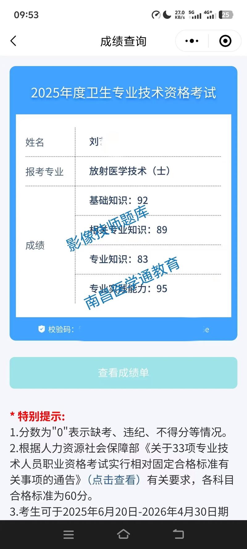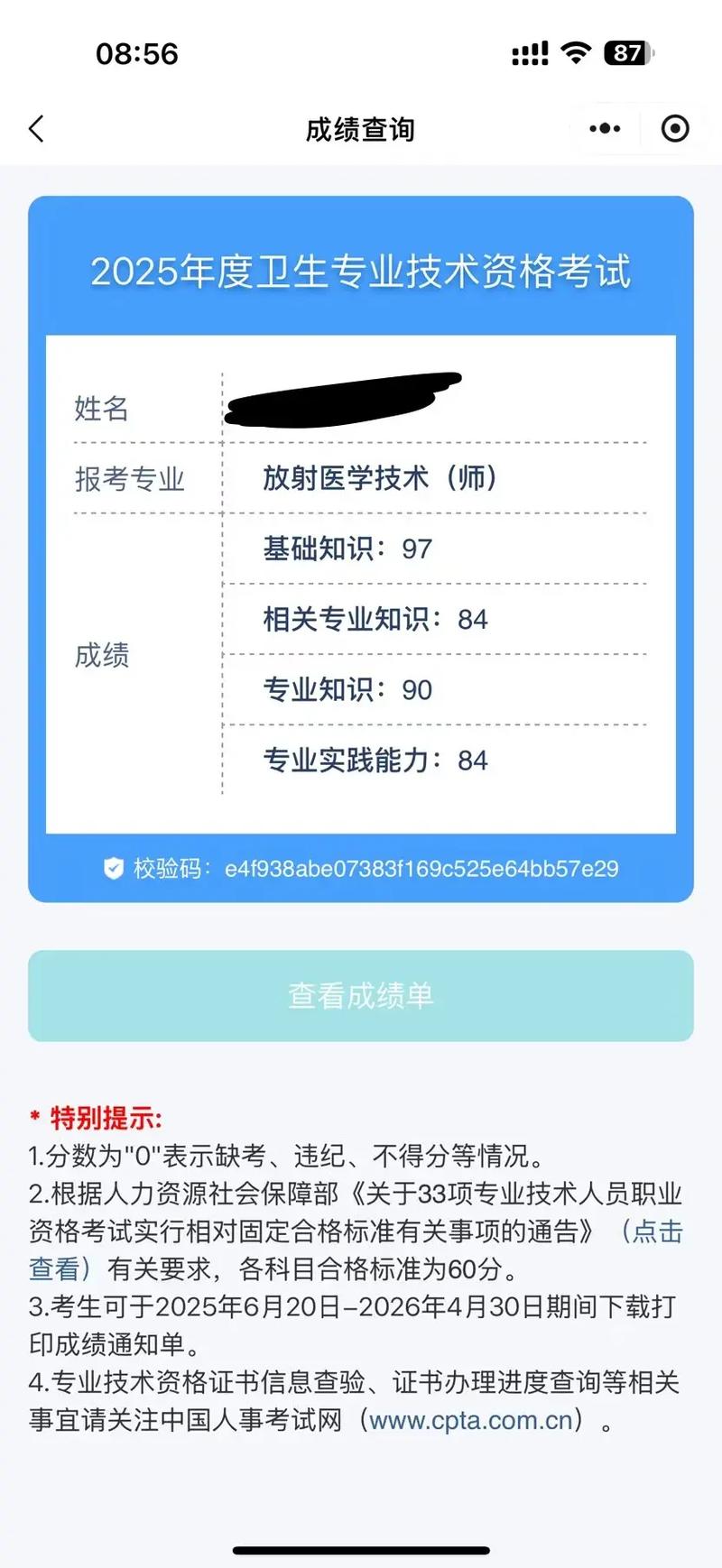 2、年放射技士属于卫生专业技术资格考试,其成绩将于考后2个月内公布。考生可通过国家卫生健康委人才交流服务中心官方网站、小程序(百度、微信)查询成绩。需要注意的是,考生须在规定时间内下载打印成绩单并妥善保管,逾期无法补打和补办。