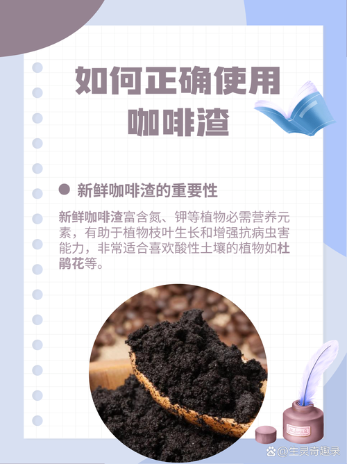 3、问题五:咖啡渣可以当肥料吗,怎么做?咖啡渣可以当肥料。少量咖啡渣可以直接撒在植物上,大量咖啡渣需要经过堆积发酵后再用作肥料,以免对植物造成烧根的危害。