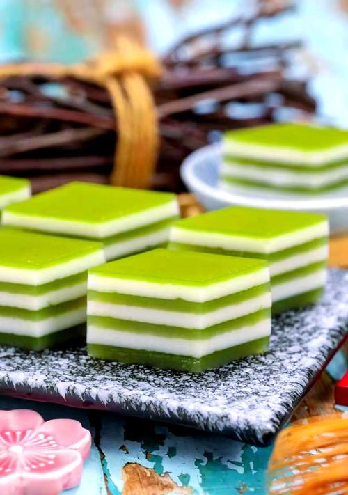 制作斑斓椰汁千层糕的过程并不复杂,但需要耐心和细致的操作。一般分为以下几个步骤:榨取斑斓汁、制作斑斓生熟浆、制作椰汁生熟浆、分层蒸制。通过分层蒸制,可以实现层次分明的效果,而斑斓生熟浆和椰汁生熟浆的交替使用,则能保持层次的多样性和美感。在整个制作过程中,关键在于制作生熟浆的技巧。