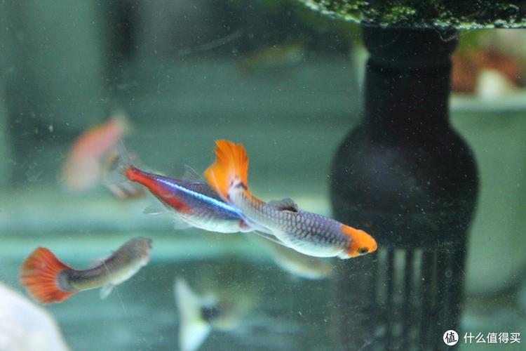 2、在混养红绿灯鱼和孔雀鱼时,需要注意饲养密度不能太大,以确保它们有足够的活动空间。此外,为了提供更好的饲养环境,建议使用方形鱼缸,并在鱼缸内配置过滤器、氧气泵和加热棒等设备。