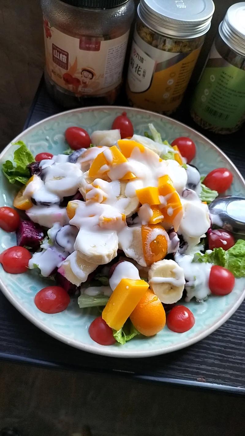 水果沙拉做法如下:食材:黄瓜、圣女果、苹果、炼乳、牛奶、沙拉酱、盐。步骤一:沙拉食材清洗干净,切好备用;步骤二:这两种食材备用,如果家里有酸奶,用酸奶替代牛奶,沙拉味道更赞;步骤三:先撒去盐搅拌一下,然后加入炼乳,香甜沙拉酱和牛奶搅拌均匀即可。