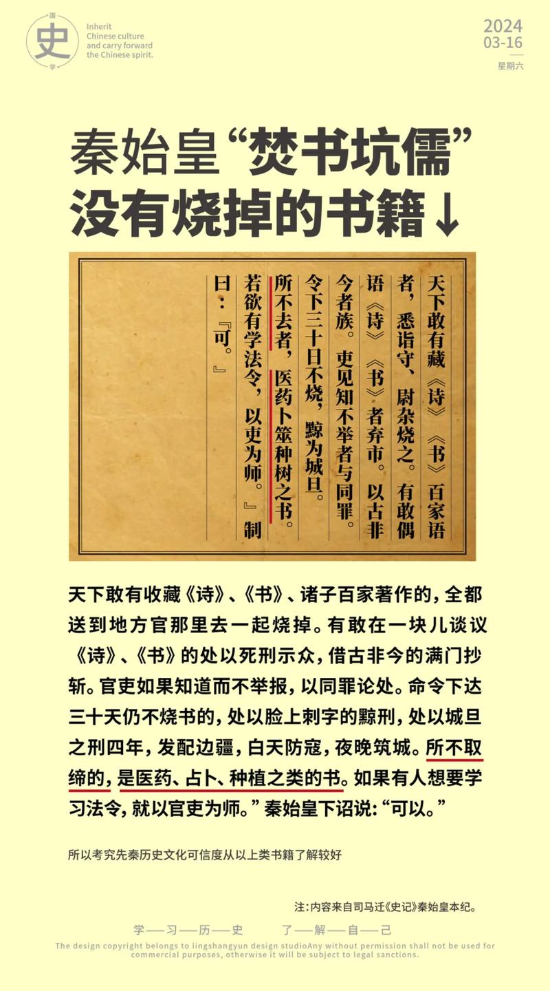 文化损失:焚书坑儒导致了大量珍贵典籍被毁,许多先秦时期的文化和思想因此失传,这对中华文化的传承和发展造成了不可估量的损失。思想控制:秦始皇通过焚书坑儒强化了思想控制,试图消除异己思想,确立法家思想的独尊地位。这种做法为后世统治者提供了思想控制的范例,对后世政治体制和文化政策产生了深远影响。
