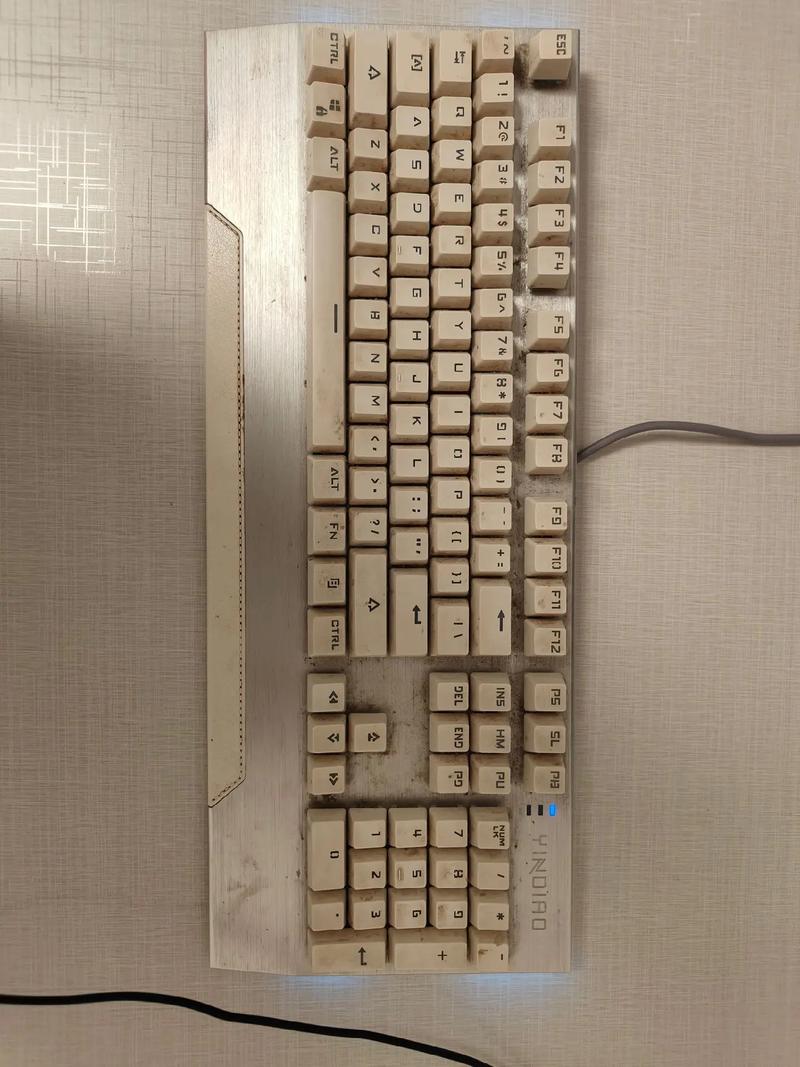 3、检查是否有灰尘进入按键内部 长时间使用机械键盘后,按键周围很容易积聚灰尘和碎屑,造成按键不灵敏的情况。可以通过观察按键周围和使用吹风机将灰尘吹出来的方法进行清理。清洁机械键盘按键 使用化妆棉蘸取少量酒精或专业的清洁液,然后轻轻擦拭按键表面,清除污渍和油脂,以恢复按键的敏感度。