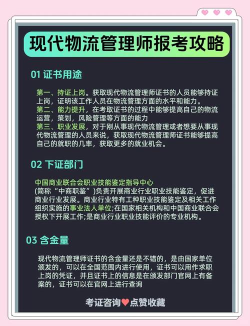 你仍然有资格报考物流师。这一要求体现了对高学历人才的开放性和包容性。综上所述,考取物流师资格需要满足一定的专业技术职称、学历及工作经验要求。这些要求旨在确保报考者具备足够的物流专业知识和实践经验,以便在通过考试后能够胜任物流师的工作职责。如果你符合以上条件之一,就可以考虑报考物流师了。