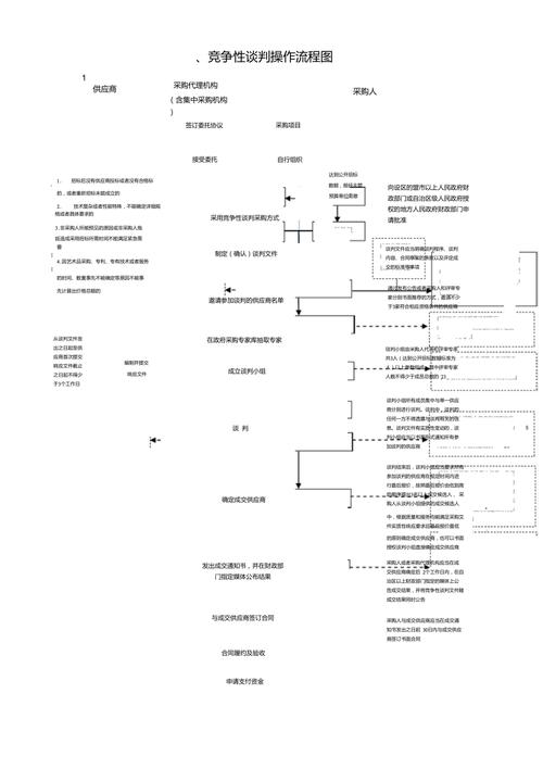 4、邀请招标流程图:(邀请招标流程与公开招标流程相似,但邀请对象不同,为特定的潜在供应商)询价流程图:(询价流程相对简单,主要包括询价通知、报价、评审和确定成交供应商等环节)竞争性磋商流程图:总结 招标采购流程图是指导采购活动顺利进行的重要工具。