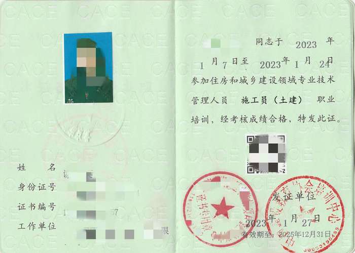 3、施工员分为多个专业类别,如土建施工员、电气施工员、水暖施工员和市政施工员等。考生可以根据自己的兴趣和职业规划选择合适的专业类别进行报考。证书获取:考生在完成培训和考试后,如果成绩合格,将获得施工员证书。施工员证书是从事施工员工作的必备证书,也是进一步考取更高级职业资格证书的基础。
