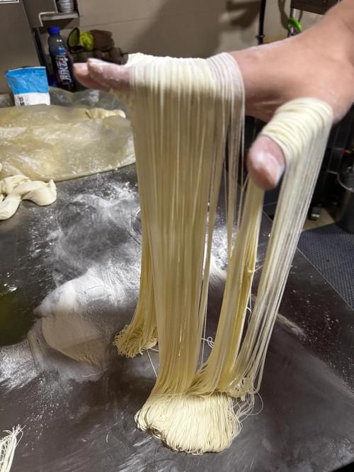 面团制备 准备材料:准备适量的高筋面粉,这是影响拉面质地的关键因素。高筋面粉含有较多的麦麸蛋白,可以让面团更加有弹性,便于拉伸。和面:将面粉倒入混合碗中,加入适量的温水(大概35°C左右),水温不宜过热或过冷,以免影响面团的质量。用温水边搅拌边加入,直到面粉和水开始形成雪花状碎块。