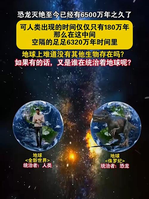 关于恐龙在地球存活的时间,实际上它们统治地球约6亿年(从3亿年前到6600万年前),但灭绝事件可能仅持续了数十年到数万年。