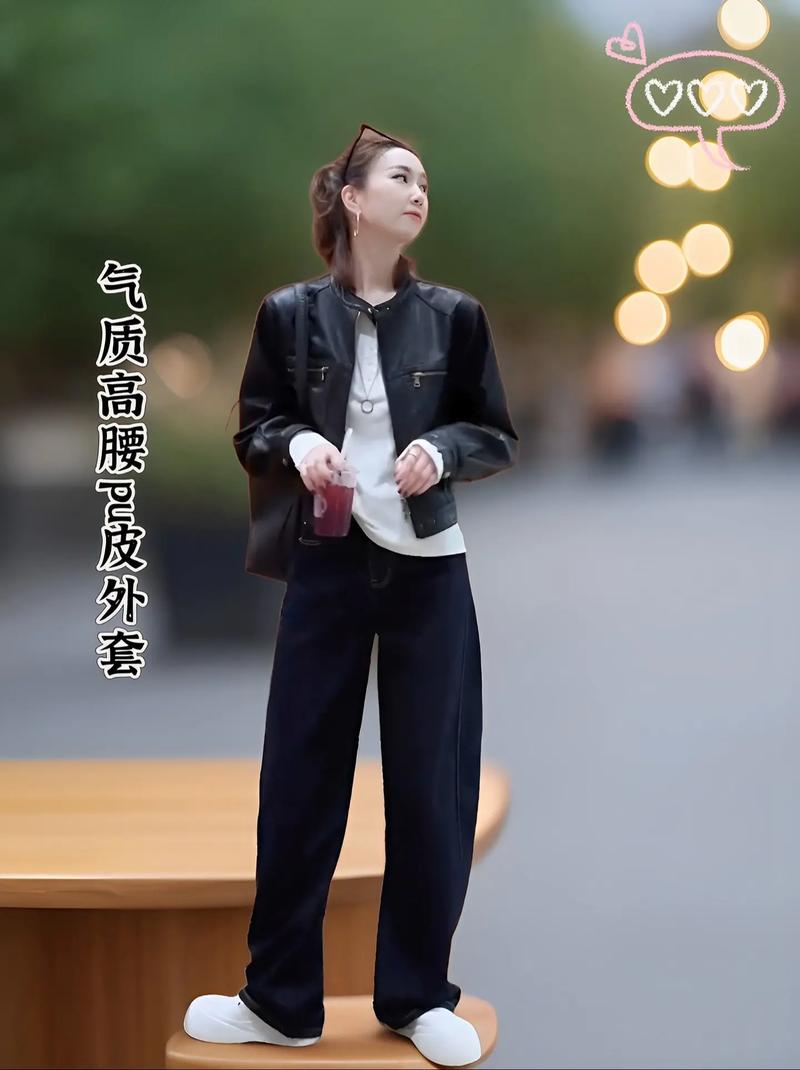 搭配牛仔裤 经典直筒牛仔裤 搭配效果:直筒牛仔裤线条简洁流畅,与修身皮衣搭配能够营造出休闲又时尚的感觉。皮衣的硬朗质感和牛仔裤的休闲感相互中和,展现出一种随性自在的风格。适用场合:这种搭配非常适合日常出行,如逛街、聚会等场合。