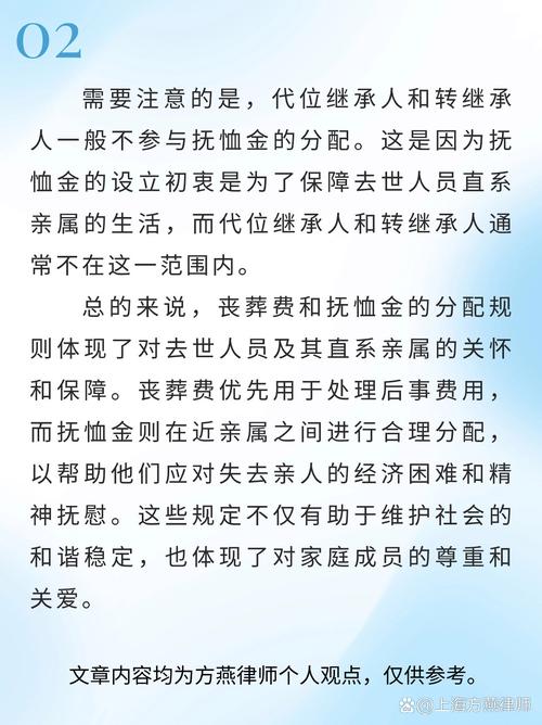 3、抚恤金方面,通常会按照逝者去世时当地当年社会平均工资的10个月来发放。这一标准旨在给予逝者家属一定的经济支持,以缓解因逝者离世而带来的经济压力。需要注意的是,抚恤金的具体数额同样会受到当地社保政策的影响,因此家属在办理抚恤金手续时,也应咨询当地社保中心以了解最新政策。