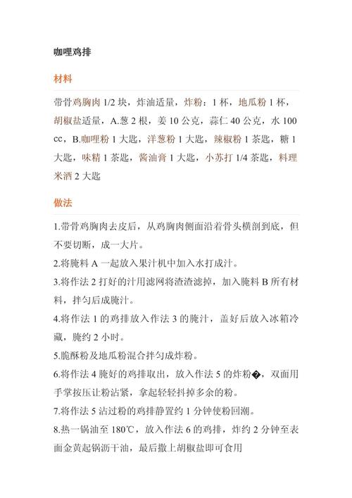 2、要炸出酥香好吃的鸡排,可以按照以下步骤进行: 准备材料和腌制鸡排 材料:准备鸡胸肉、葱末、姜末、蒜末、五香粉、辣椒粉、花椒粉、沙茶粉、糖、味精、酱油膏、小苏打、水、料理米酒、炸鸡排粉和孜然粉。 腌制:将鸡胸肉洗净后去皮去骨,横剖成蝴蝶状的肉片,注意不要切断。